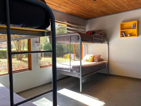 Twin Room: With 2 single beds and a desk, the twin room shares a bathroom in the Backpackers Lodge and has easy access to the kitchen and the relaxed seating and dining area. Nice views over the garden.